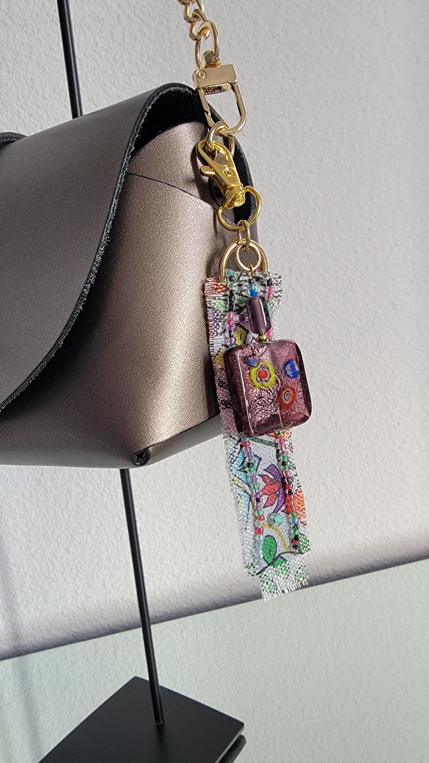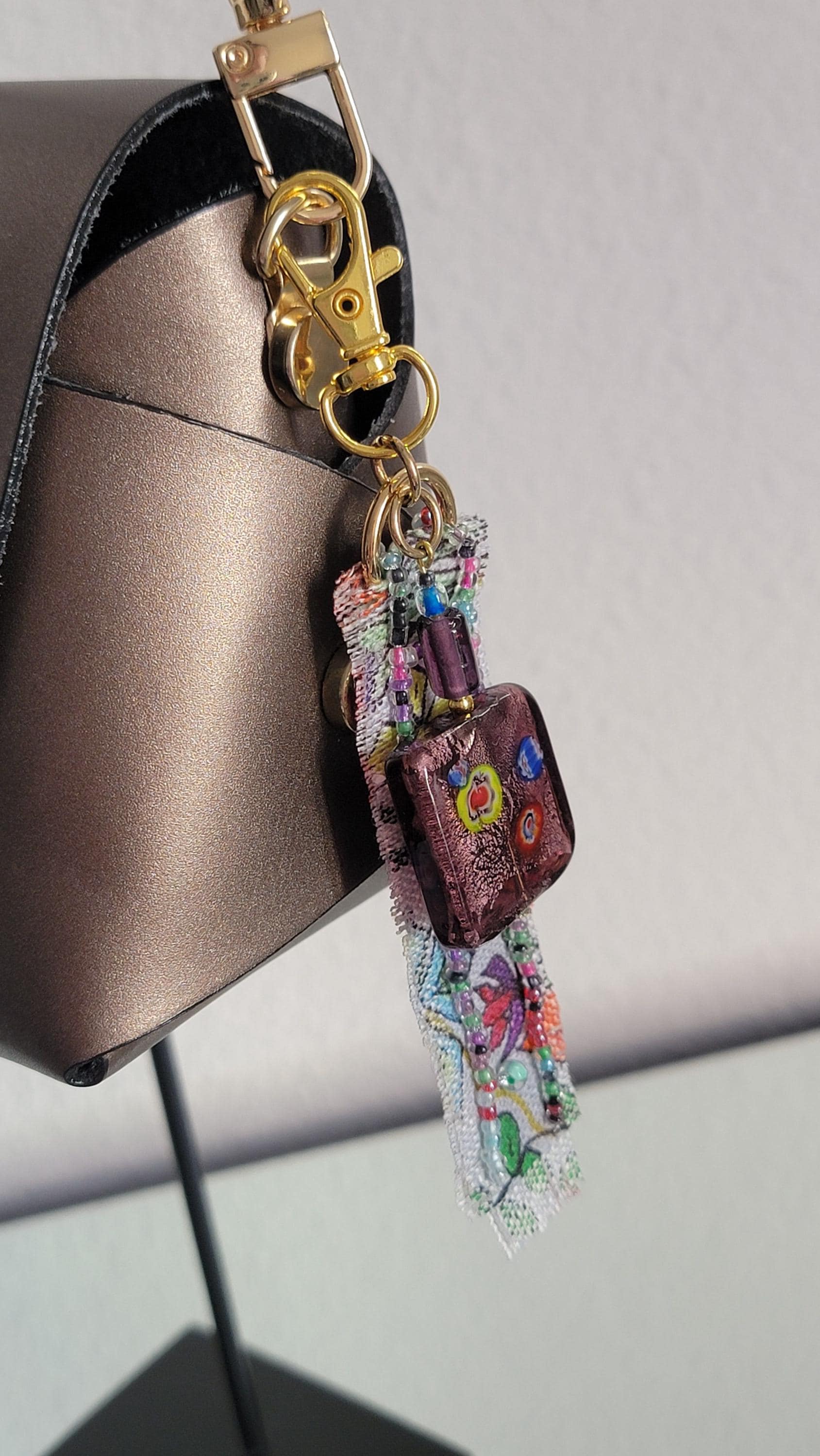 Couture-style bag jewel in embroidered linen, exclusive design by Lenlumineuse