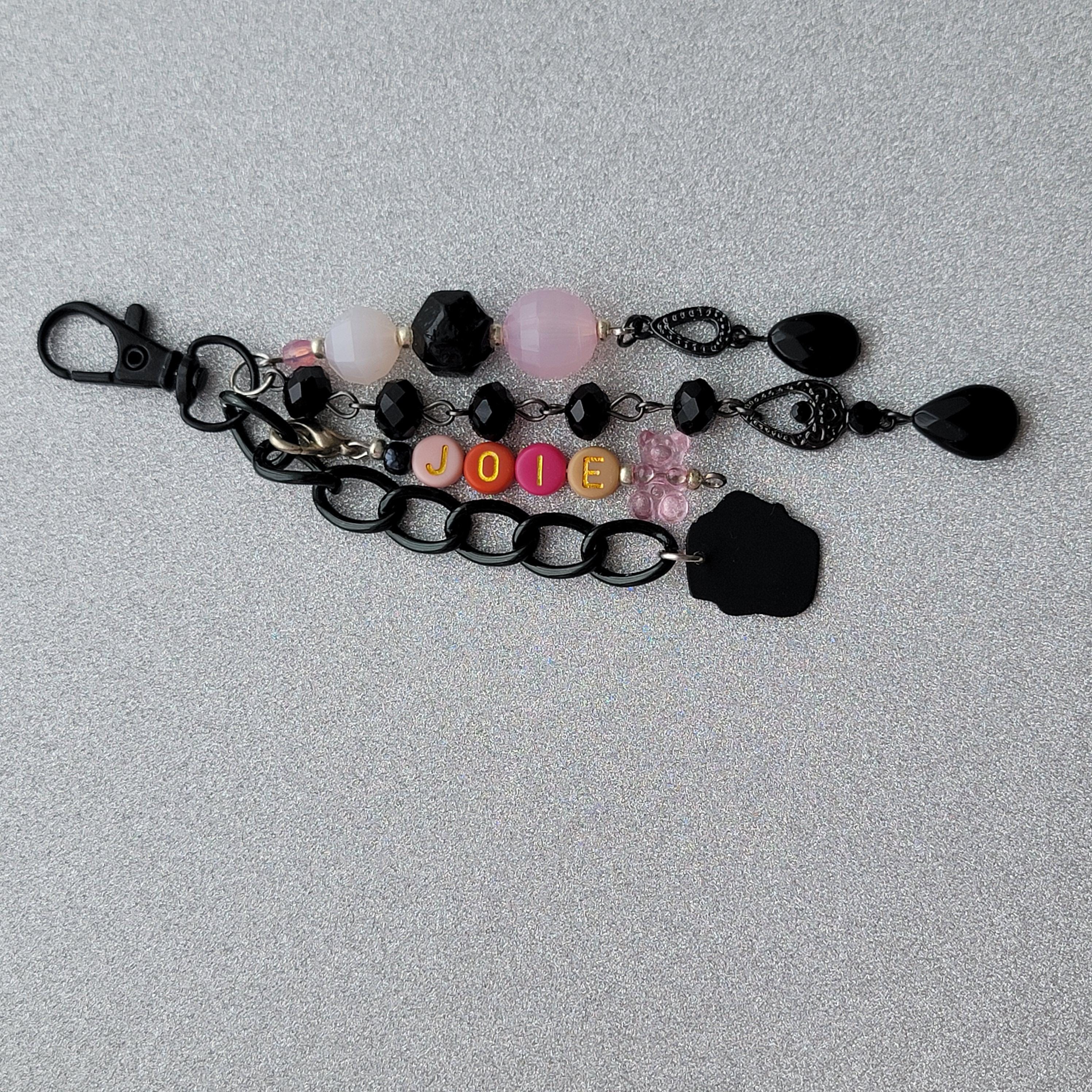 Black metal charm and pink teddy bear pearl