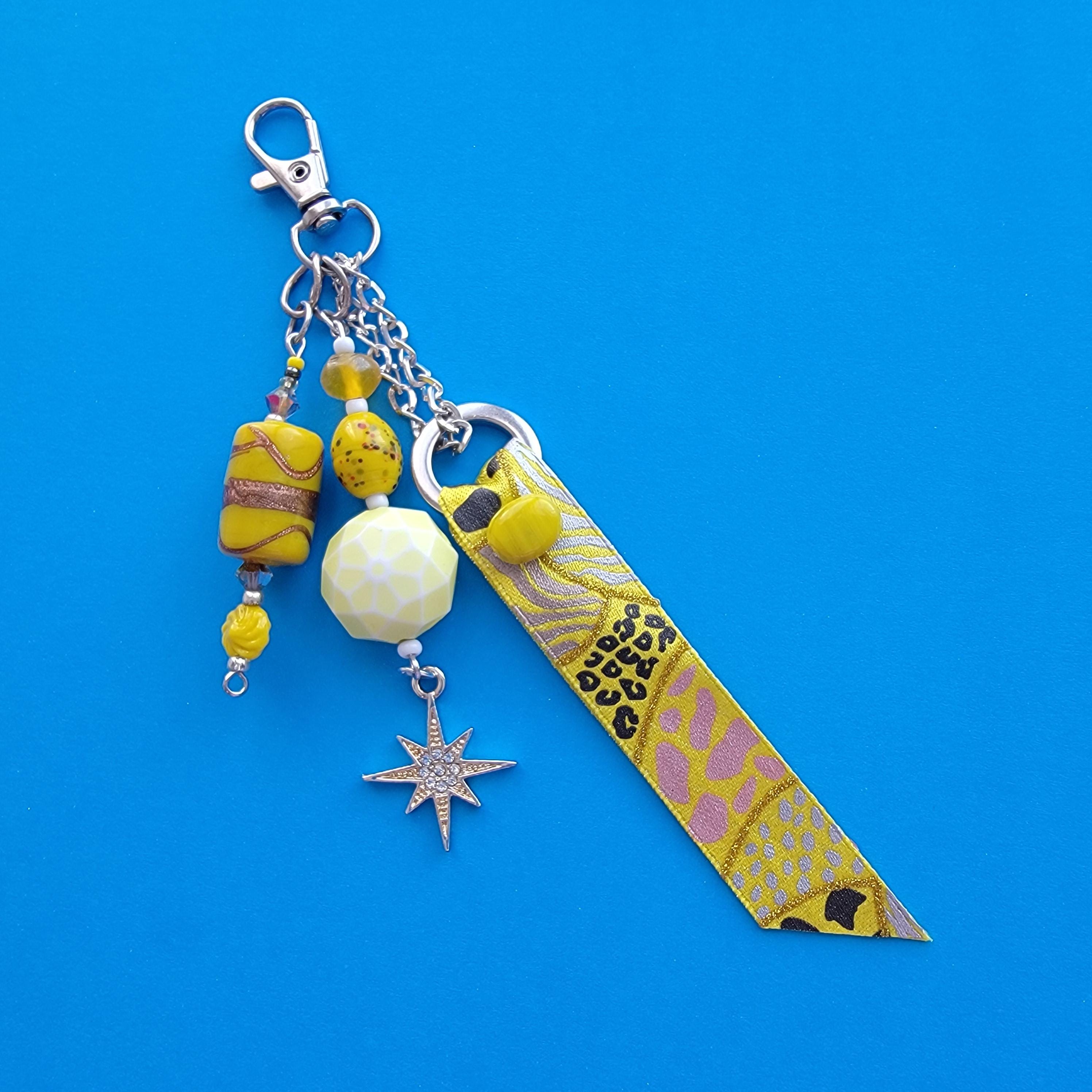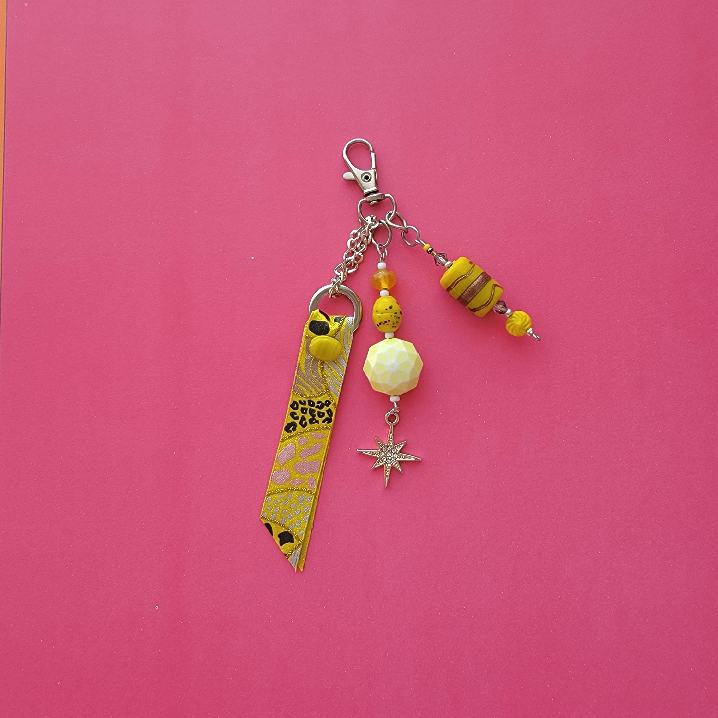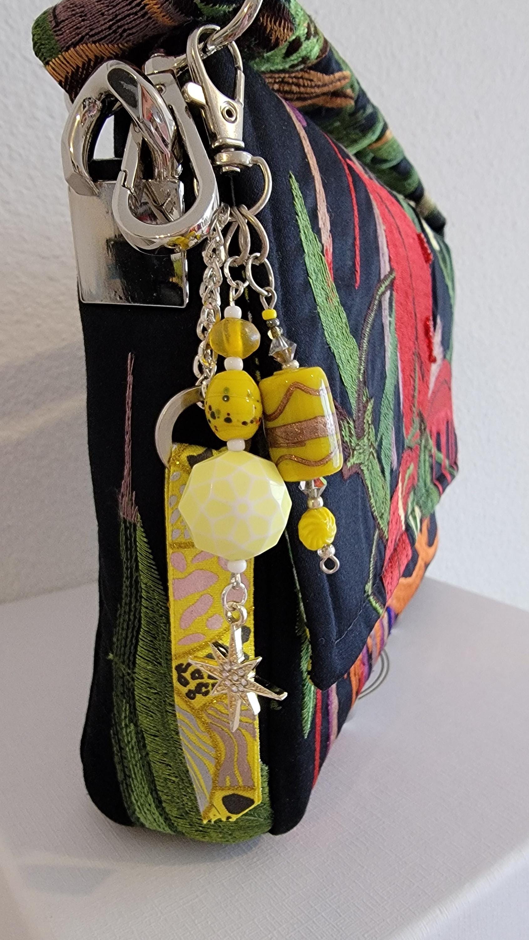 Bag charm or bag charm made of fancy beads and precious satin ribbon