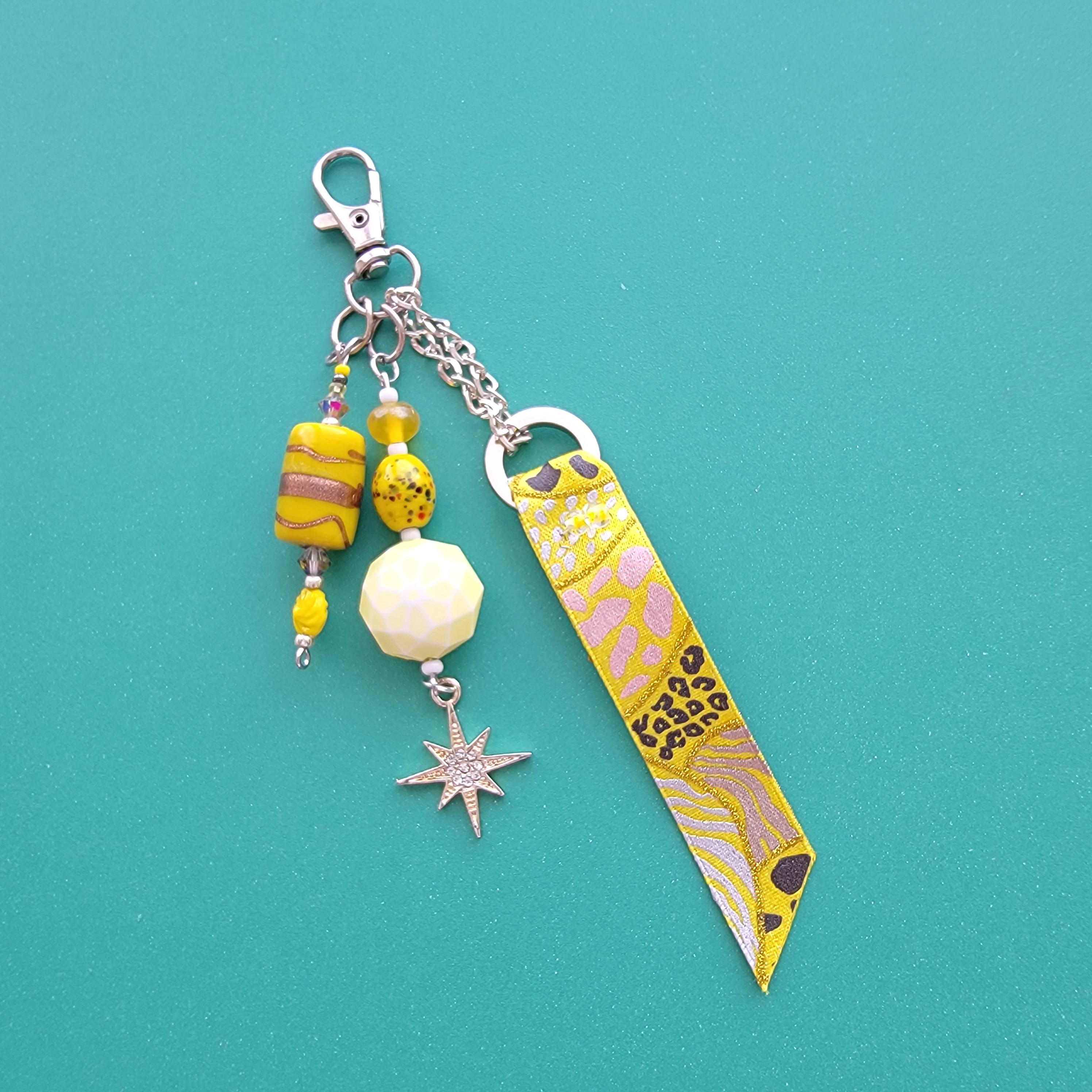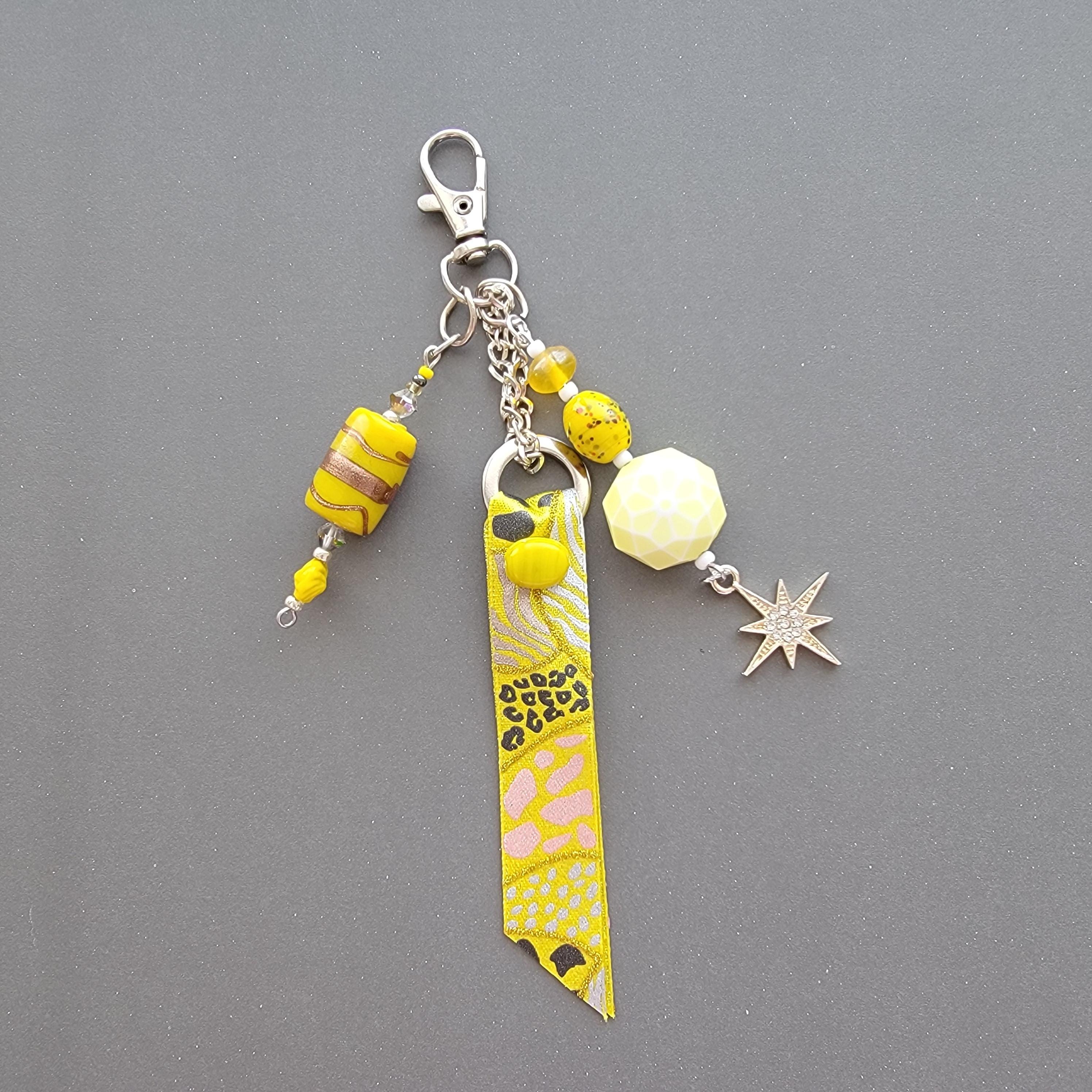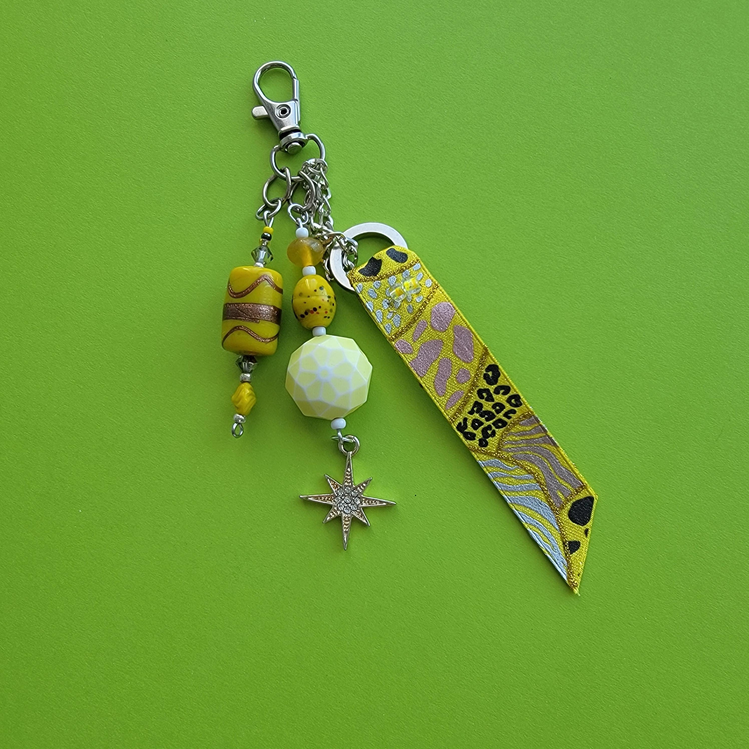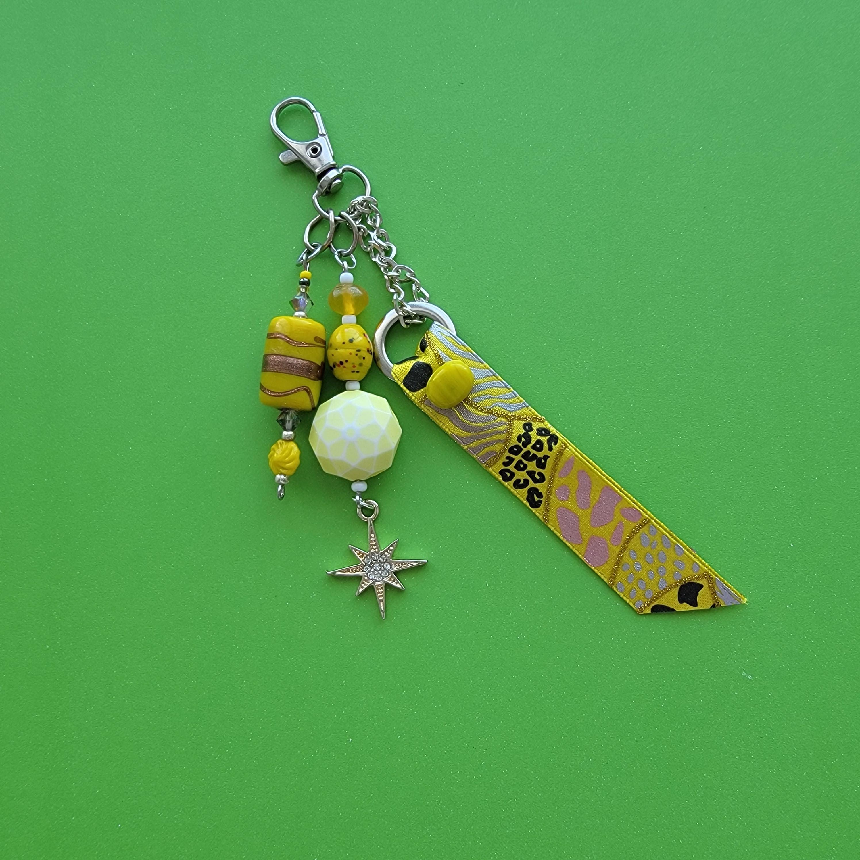 Bag charm or bag charm made of fancy beads and precious satin ribbon