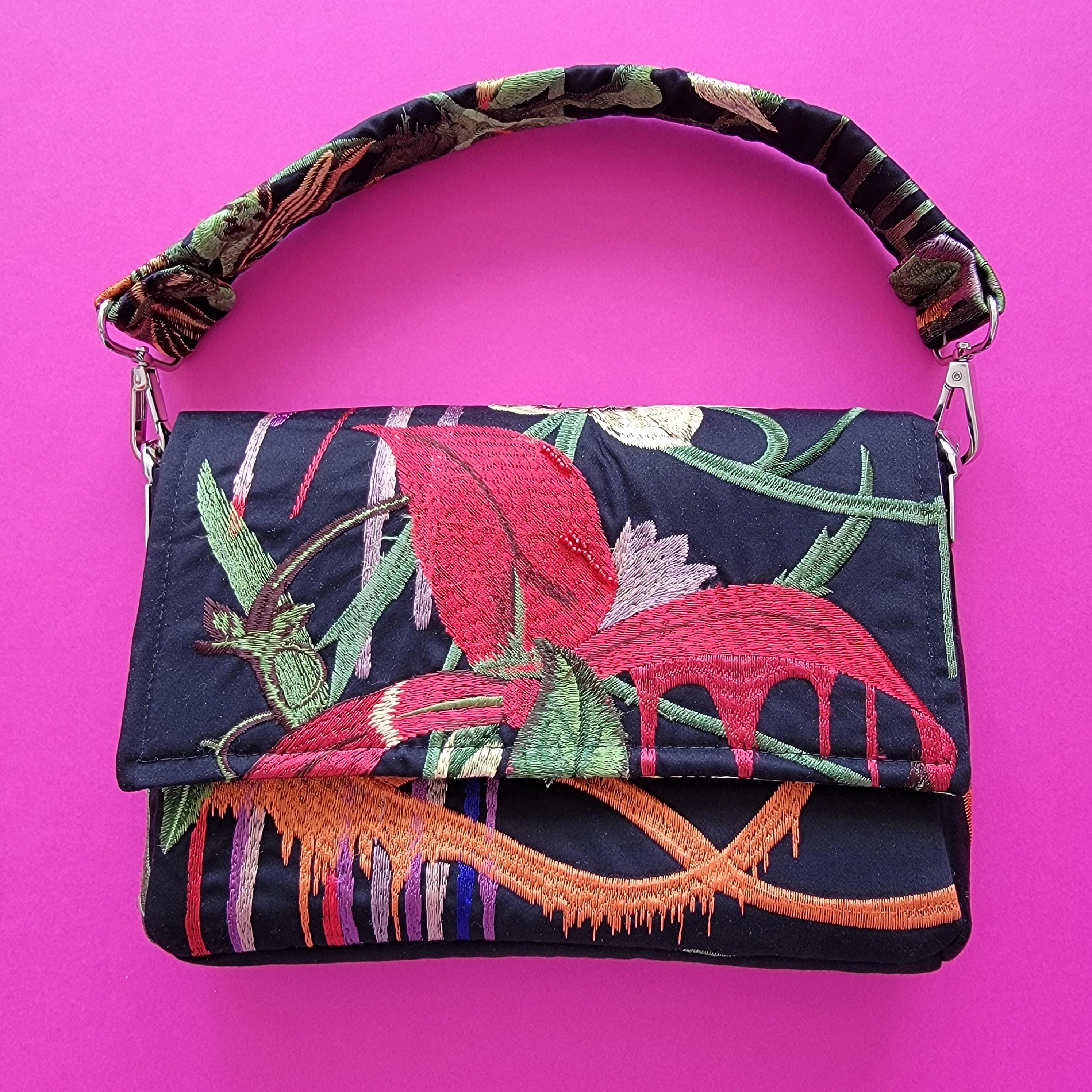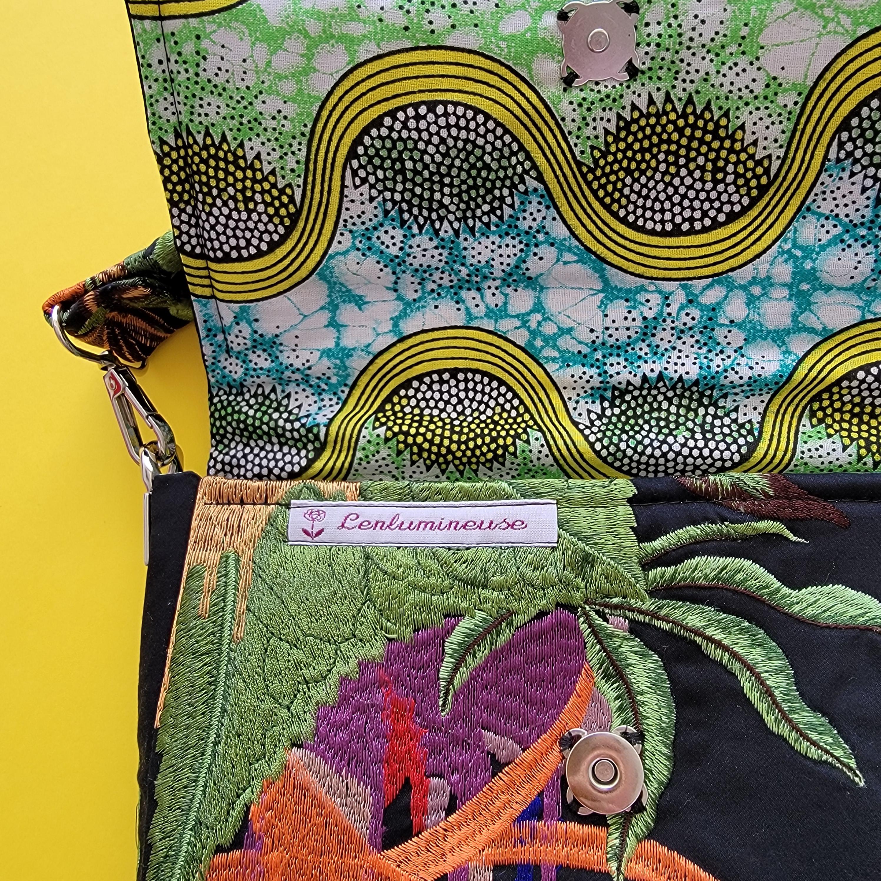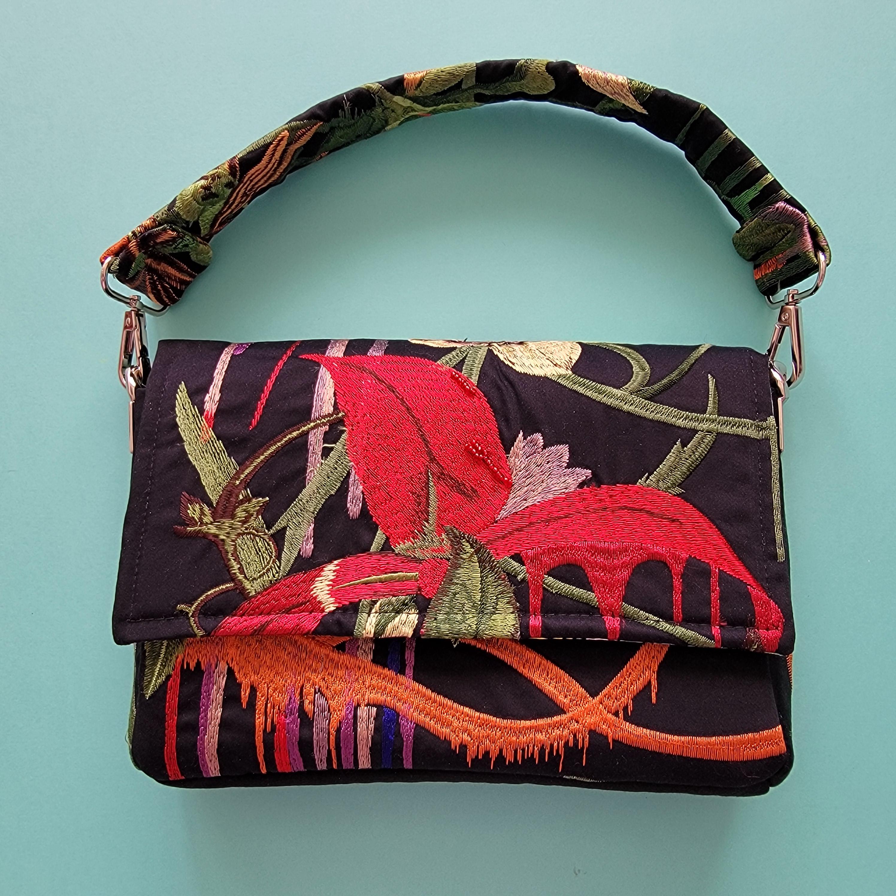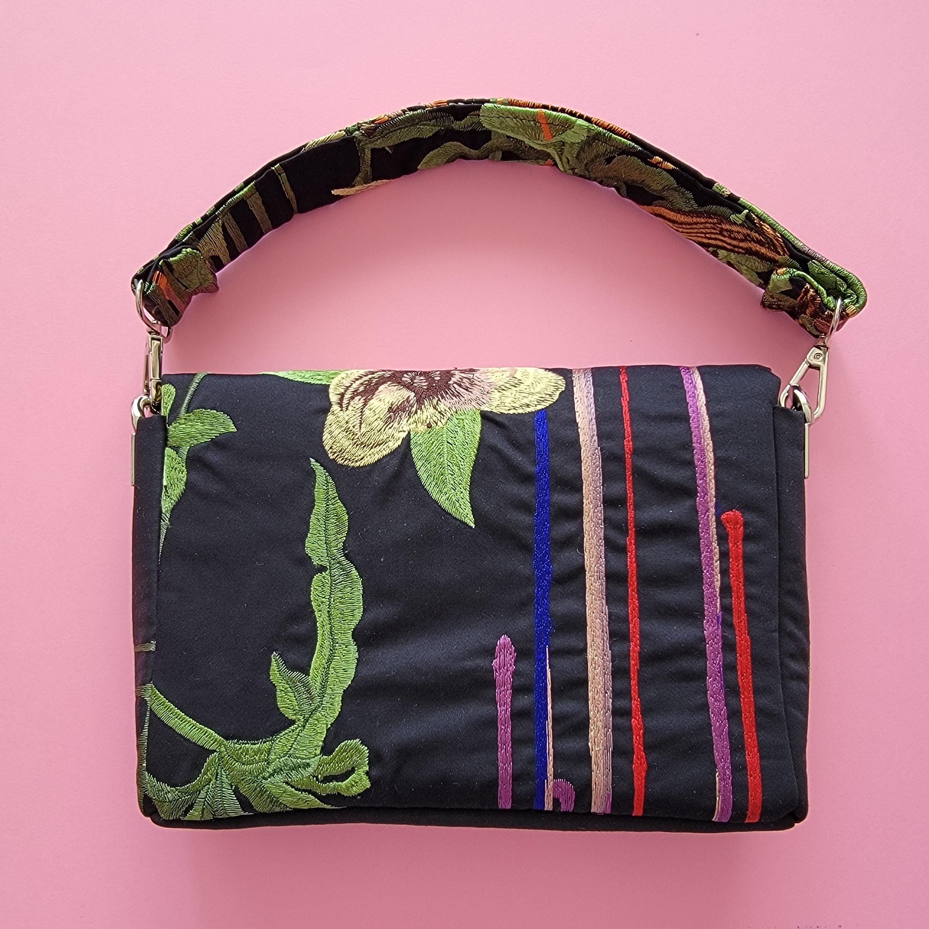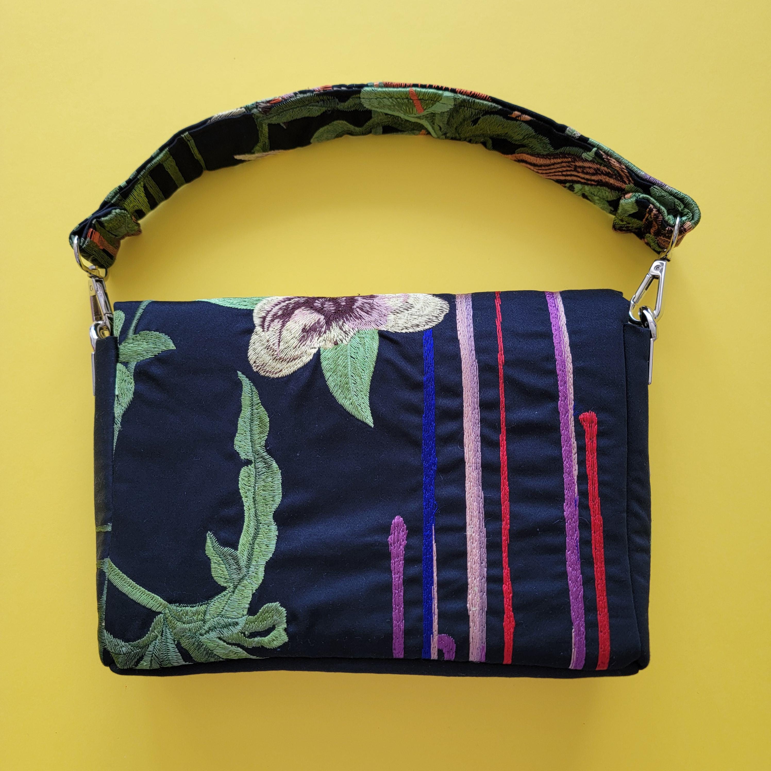 Evening bag or ceremony or special occasion in high-end recycled designer embroidered fabric