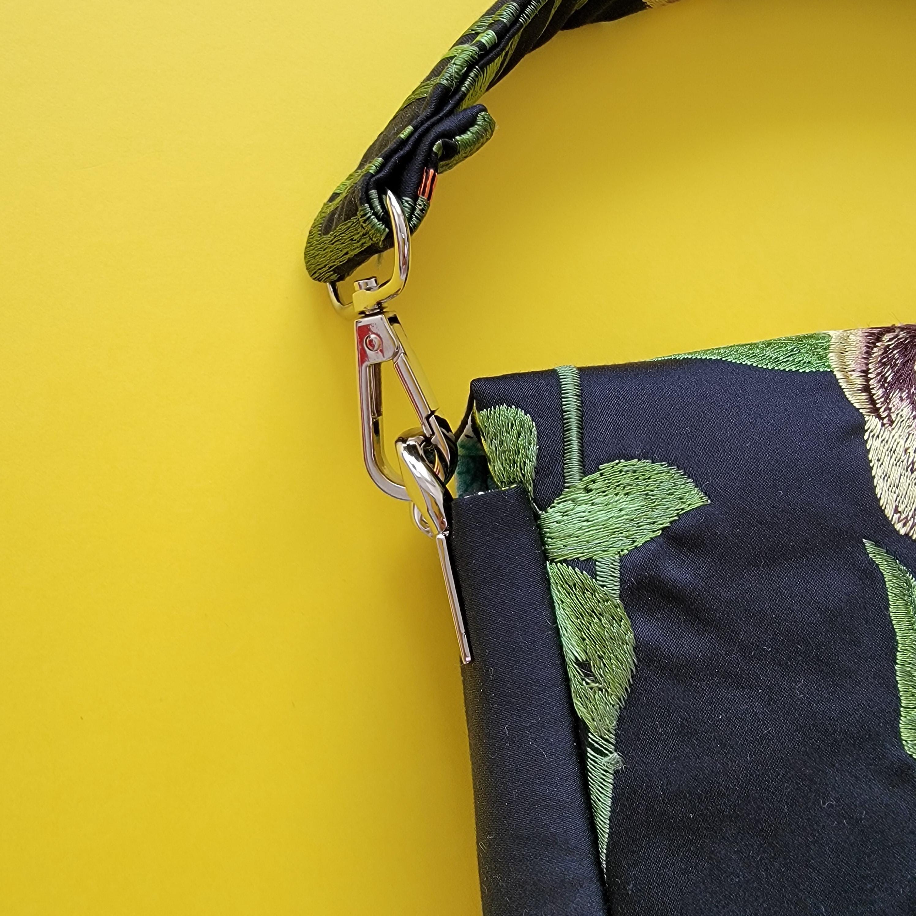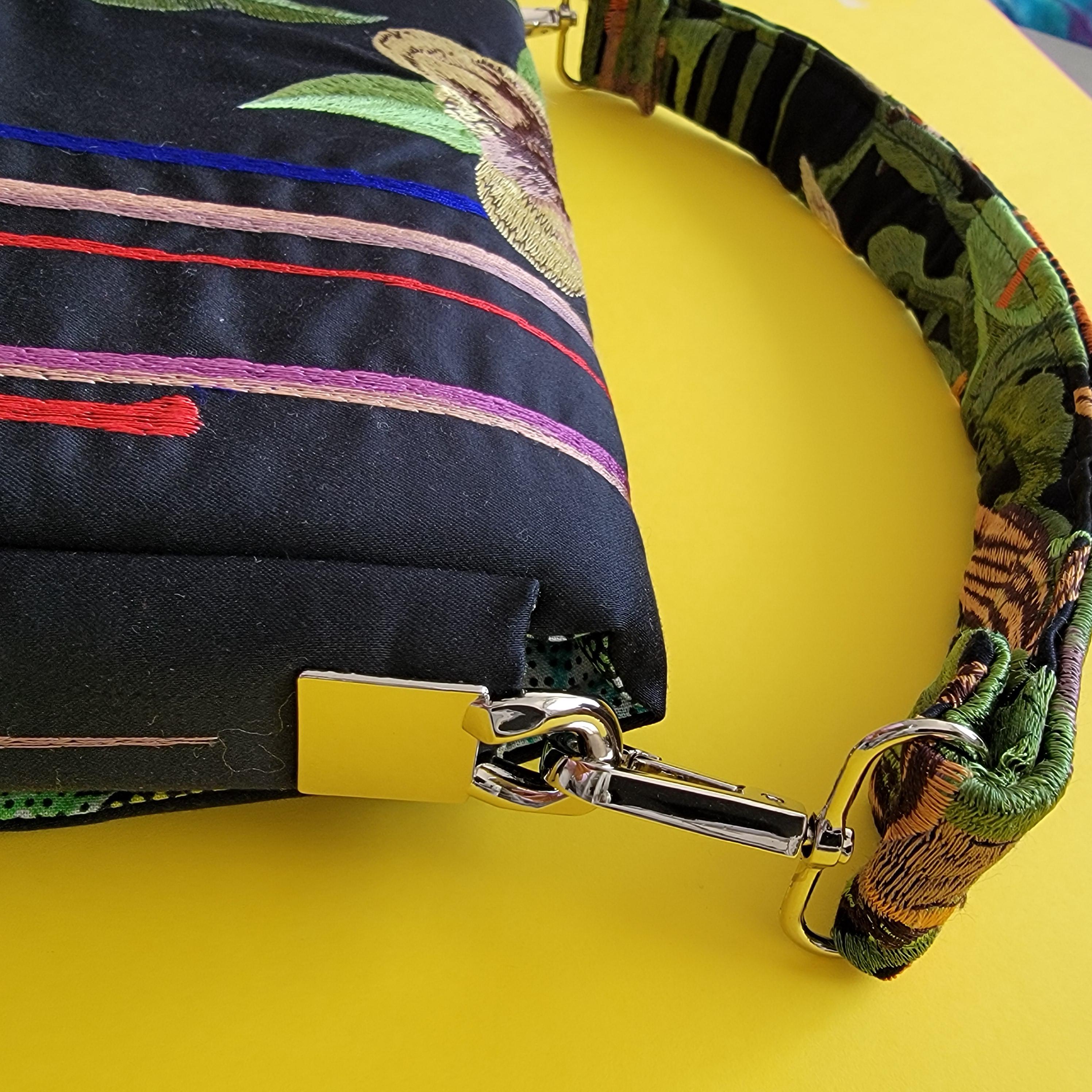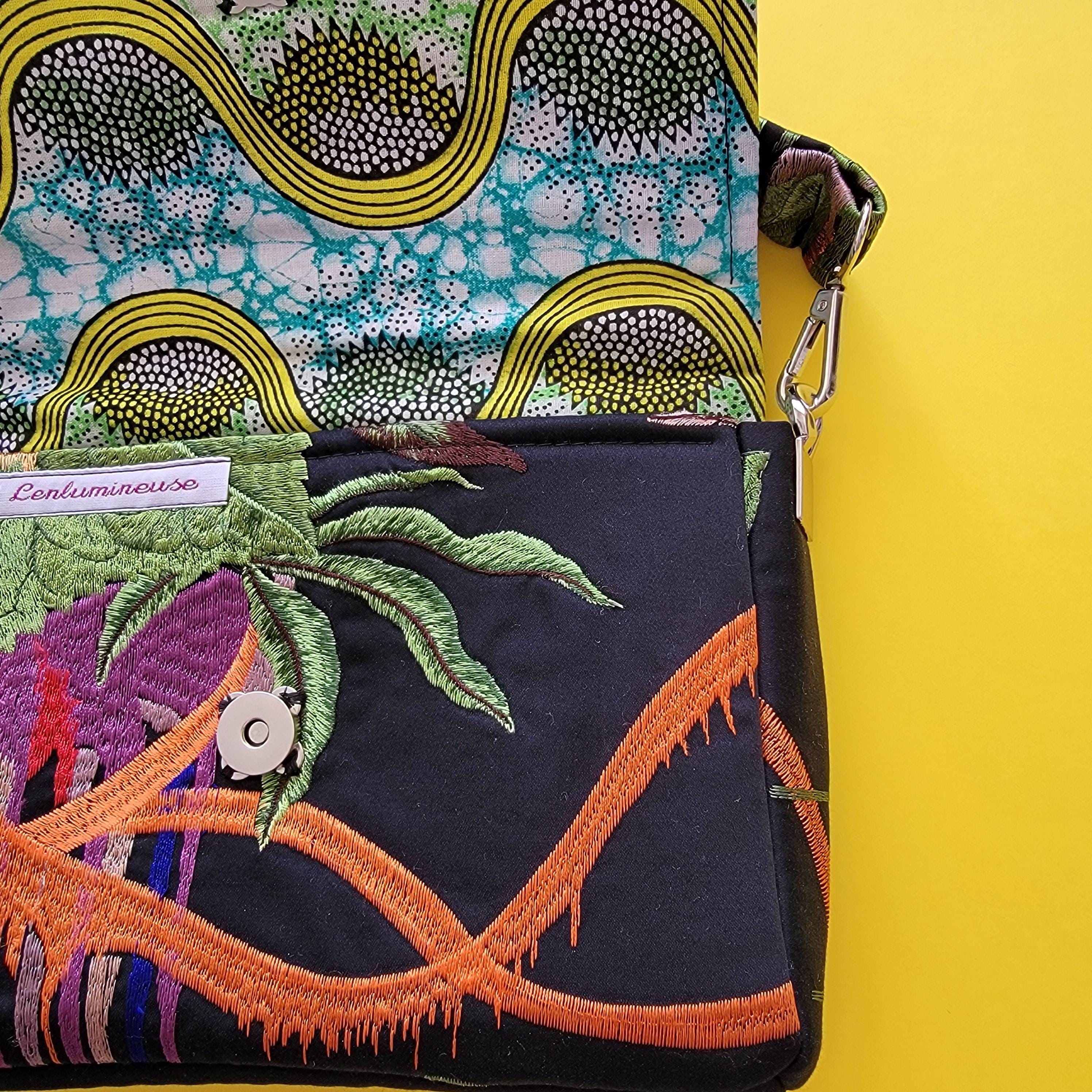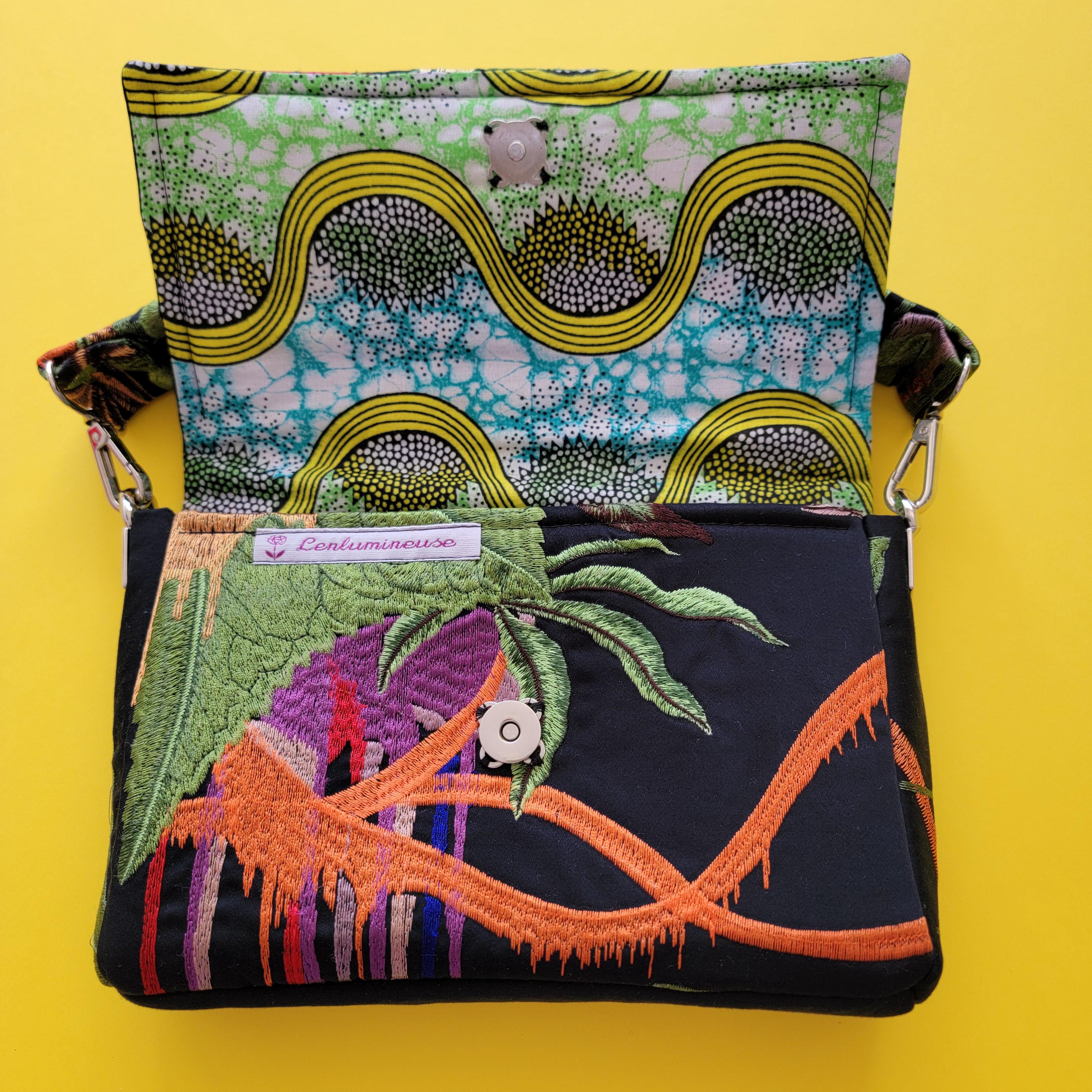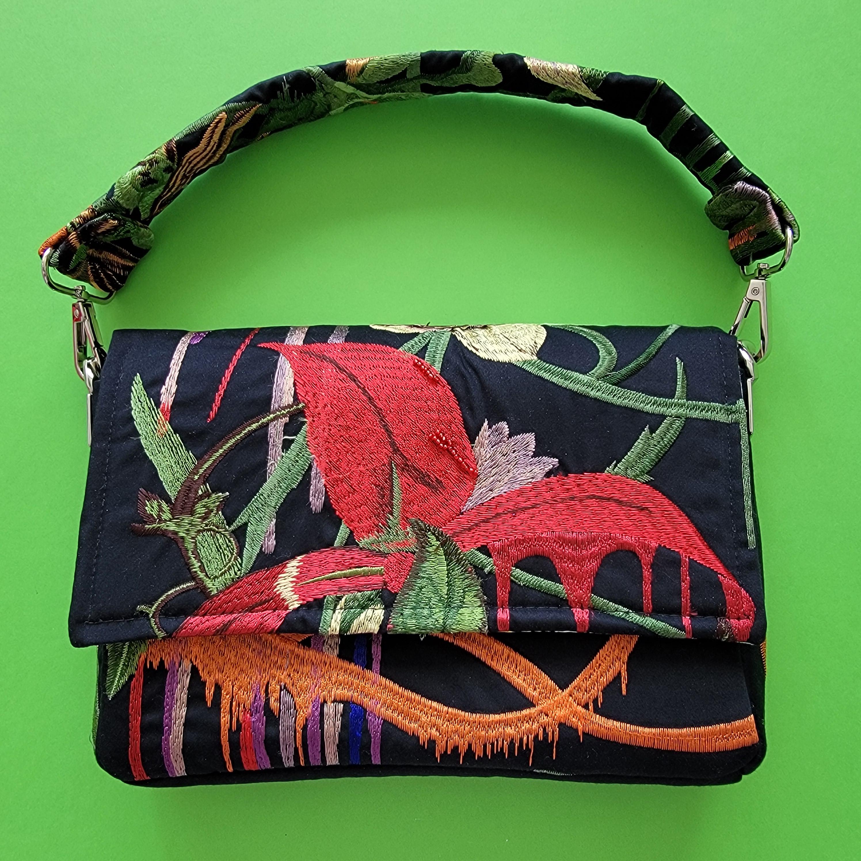 Evening bag or ceremony or special occasion in high-end recycled designer embroidered fabric