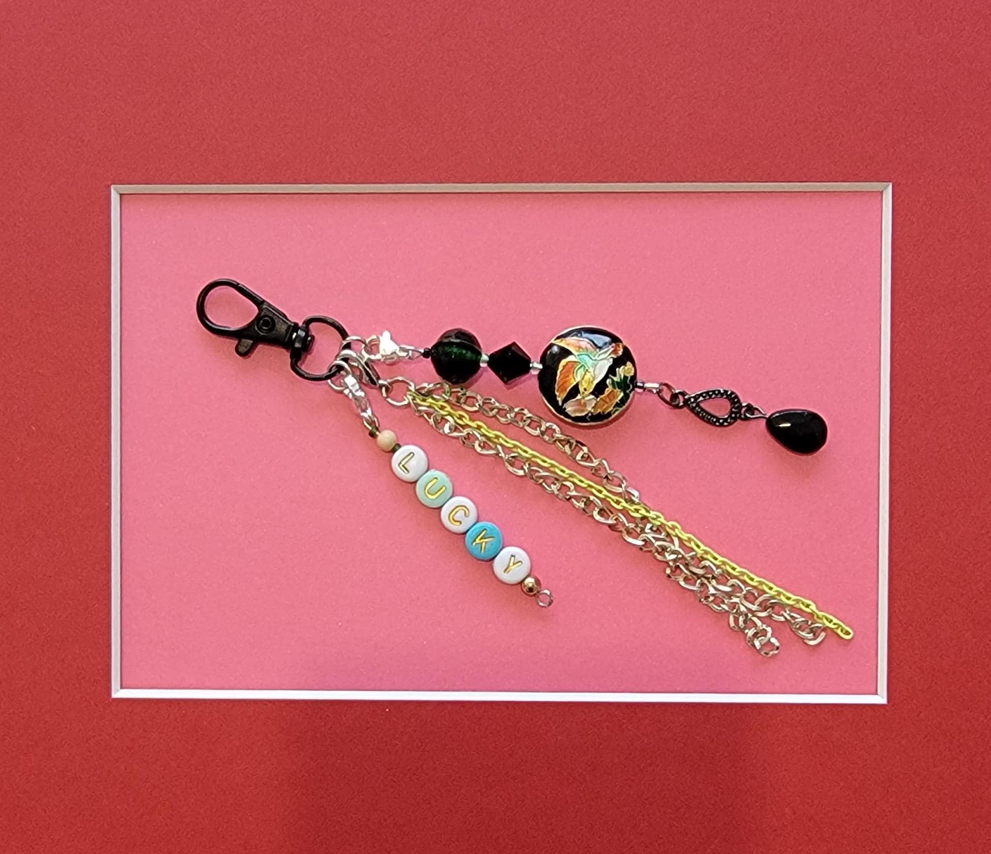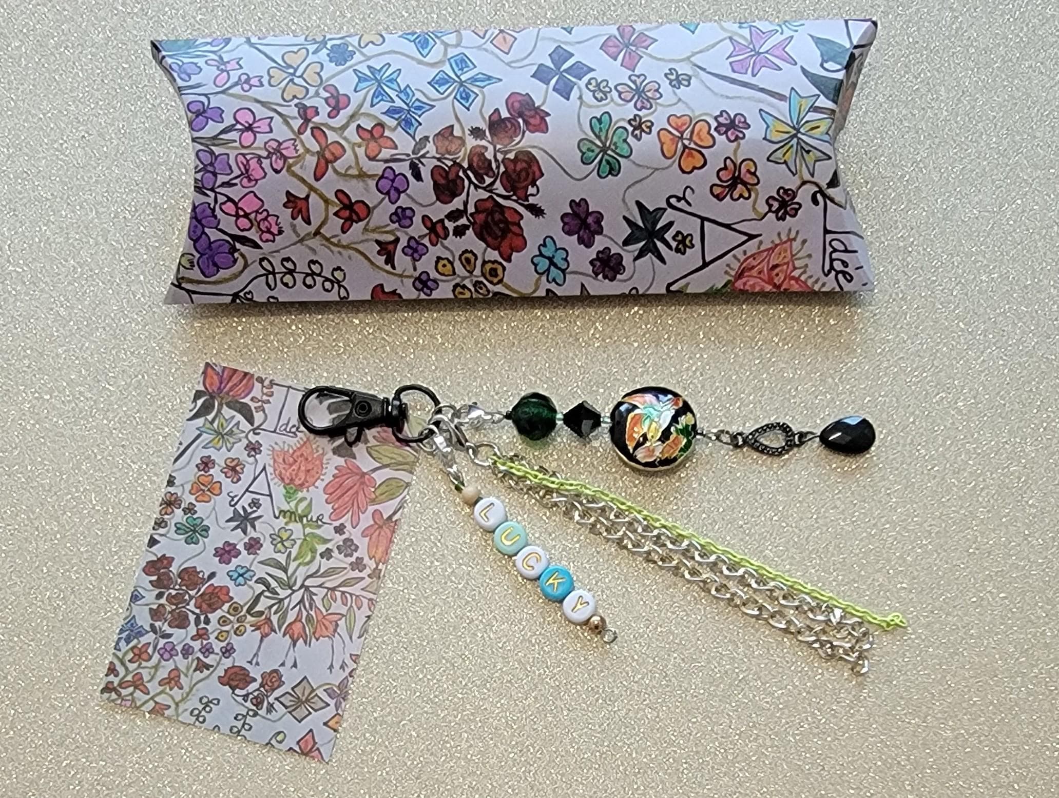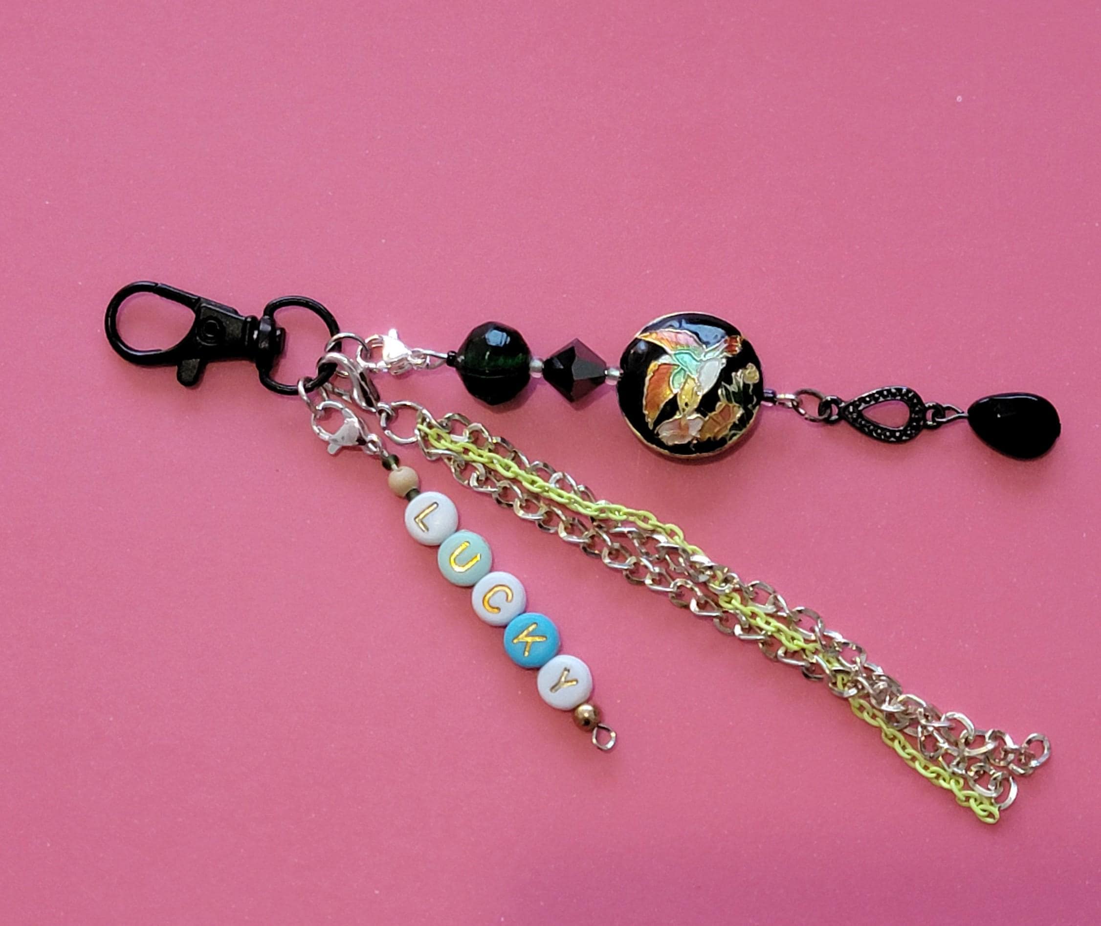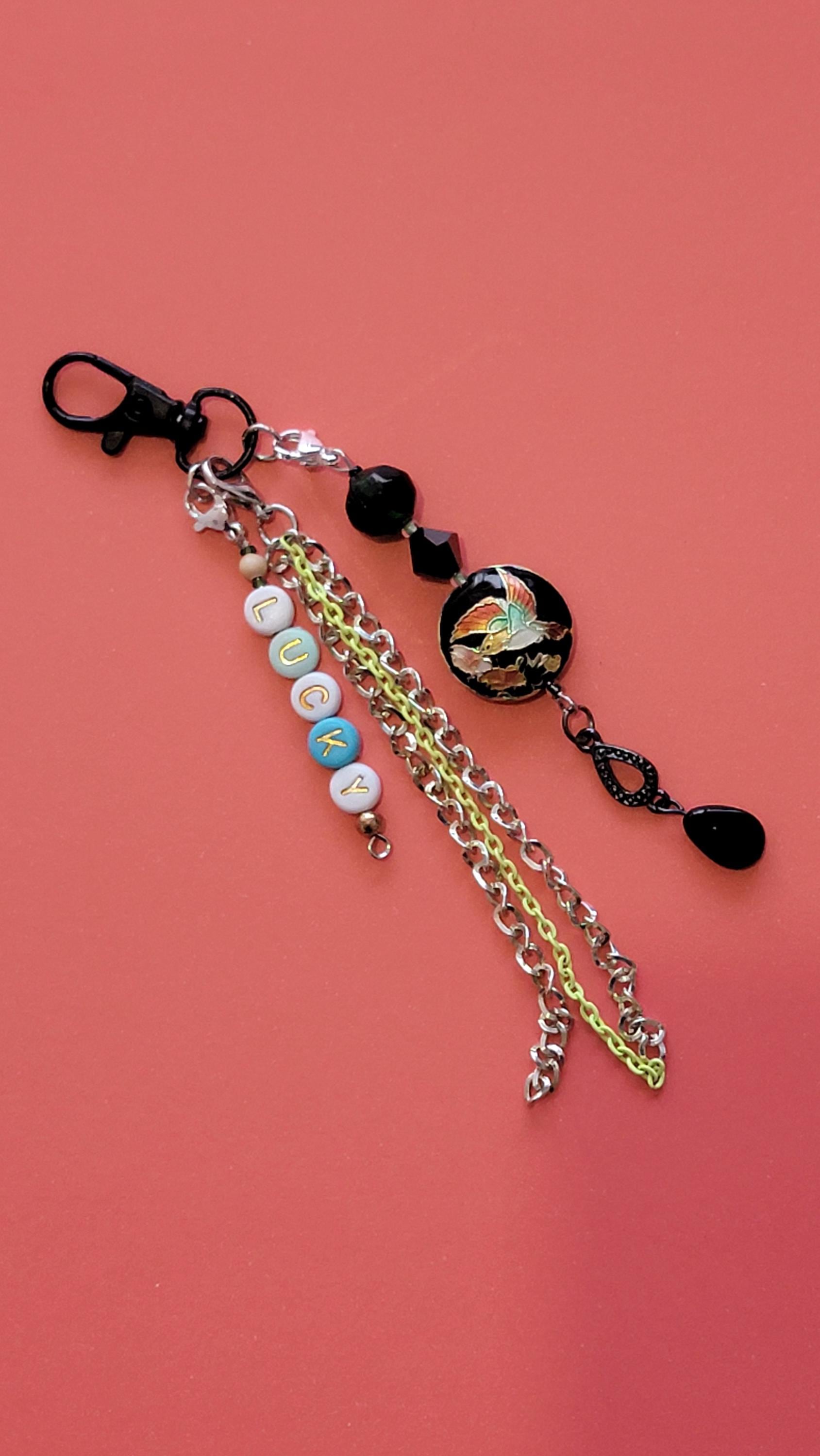 Bag charm or lucky charm made of fancy beads